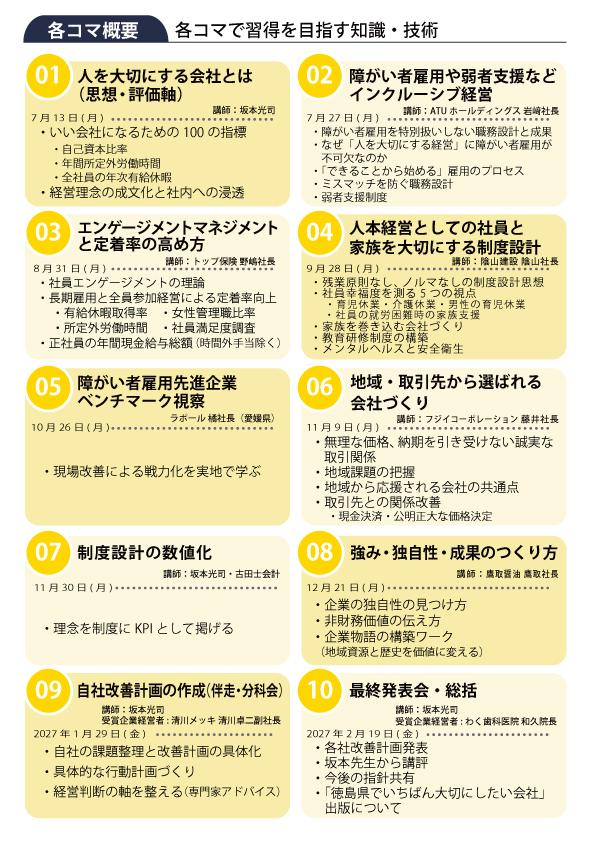 今年度からの人を大切にする経営講座は内容を経営者向けに一新して徳島から「日本で一番大切にしたい会社大賞」を受賞できるレベルの会社を増やしていきたいという考えのもと開講するため、この考えに賛同していただき受講していただける方を訪問して勧誘していこうということになっております。