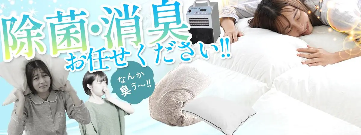 菌やバクテリアは、ふとんの生地の劣化を早める原因にもなりますが、 除菌・消臭をすることで、寝具を清潔に保ち長持ちさせることに繋がります。